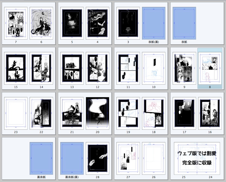 下書きから描き直してもどうしても納得いかない見開きで詰まってしまい、にっちもさっちもいかなくなったので、これはいっそ無くしてみたほうがいいかもしれないという悪あがき。