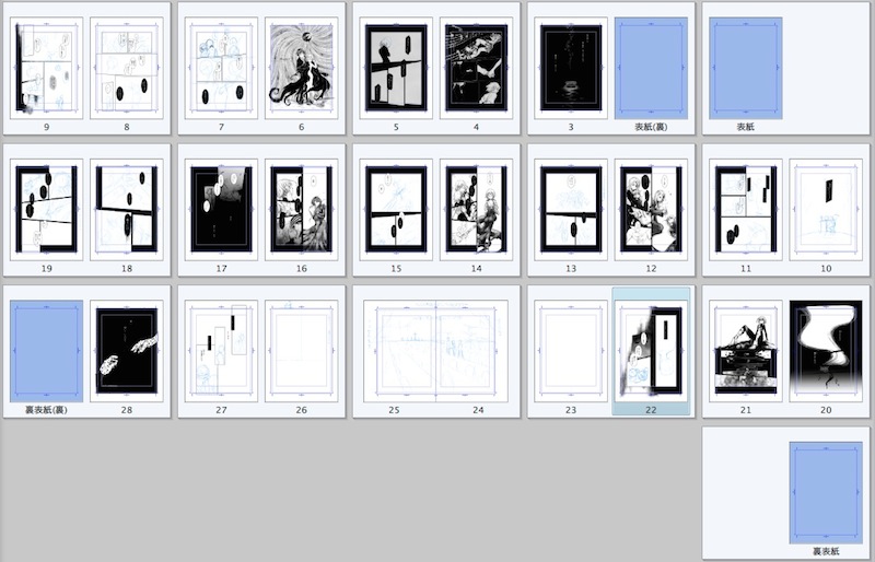 コマ割とフキダシ配置ほぼおわり。(まだ確定してないページが数枚)